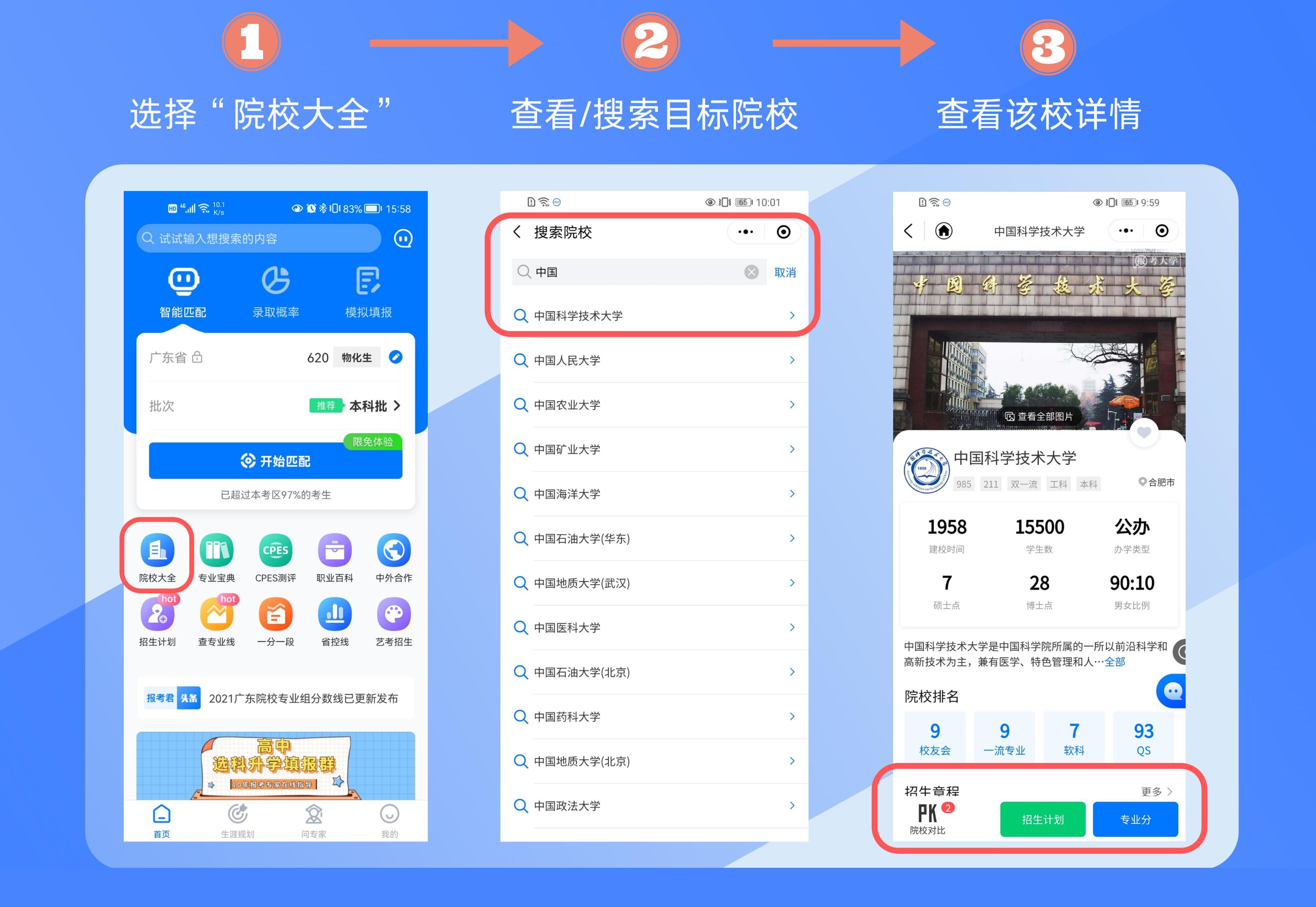 2. 學校專業查詢:提供全國各高校的專業介紹和錄取要求,幫助用戶了解各個學校的特色和專業情況。