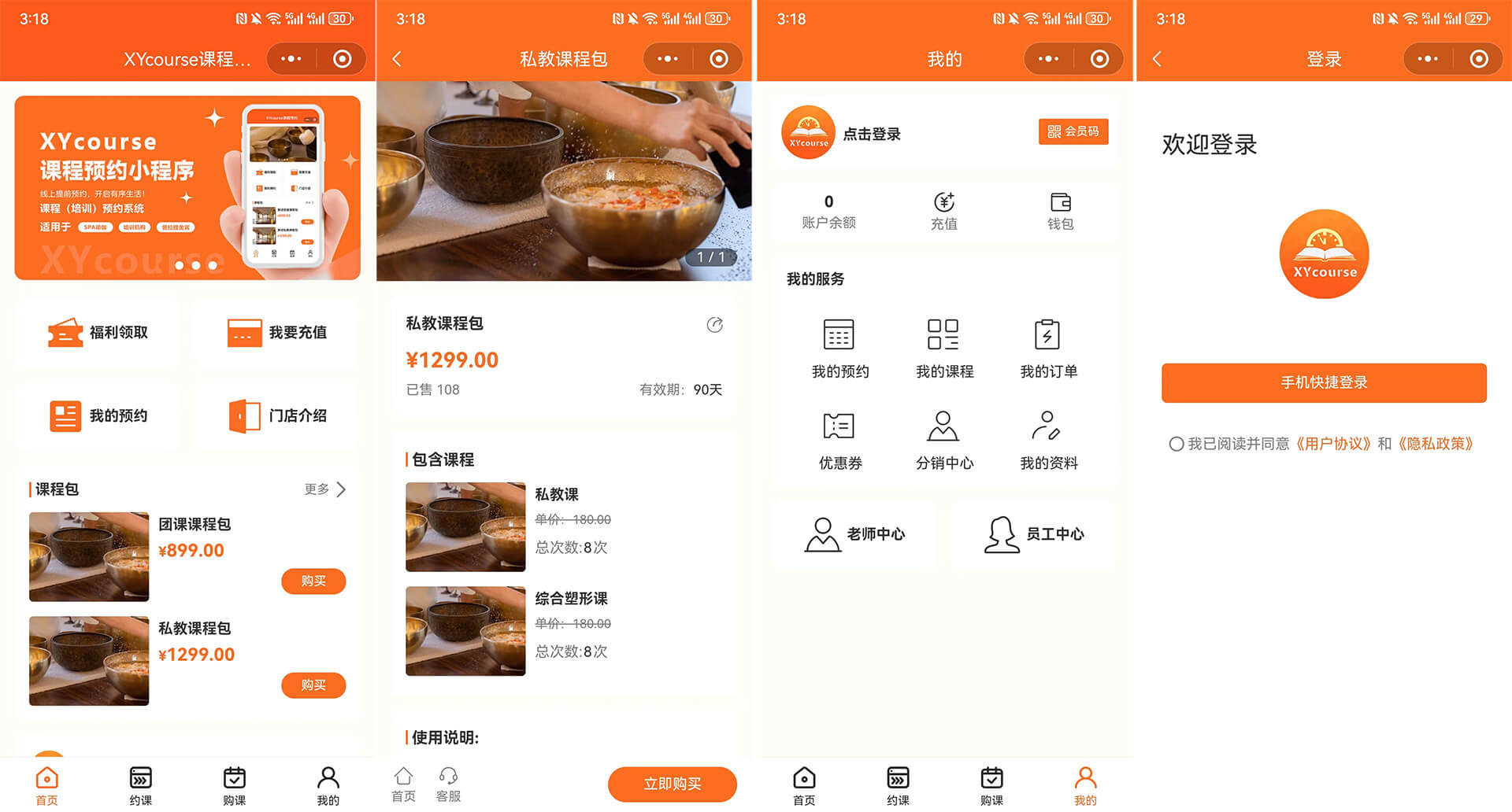瑜伽館、普拉提等機(jī)構(gòu)課程預(yù)約微信小程序