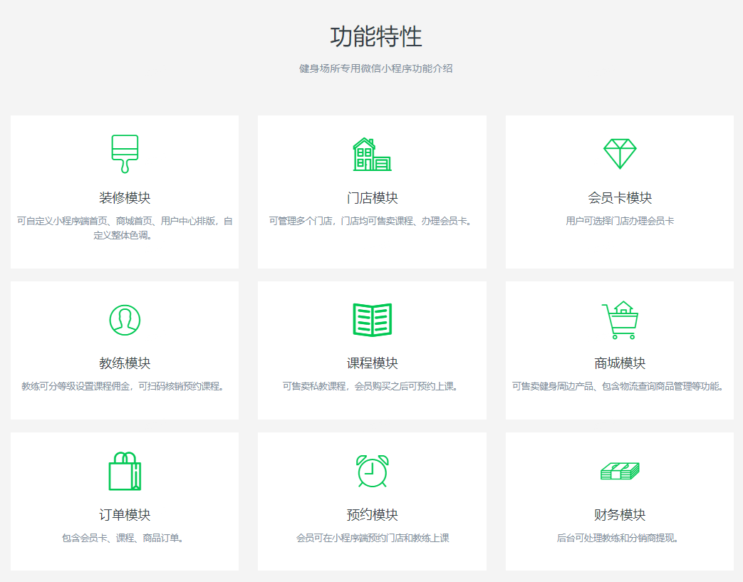 2. 課程模塊:可售賣私教課程,會員購買后可預約上課。您可在小程序中設置課程類型、時間、教練等信息,方便會員選擇適合自己的課程。同時,您還可以根據會員需求,定制個性化課程套餐。